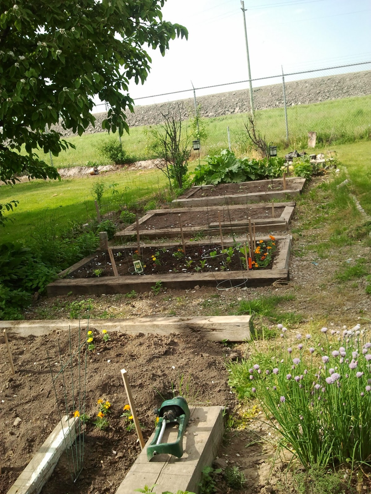 It's that time of year again. After about a month of working in the yards we see the end in sight. We still need to plant some shrubs and finish a few areas here and there, but overall, we're happy with the progress this year. The veggies seem to be starting out well, but we'll see how potatoes grow ( our first try) and the pumpkins (we've tried 5 years now and only suceeded 2 times to harvest a pumpkin). We still have seedling that need to eventually find a growing home,